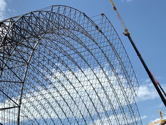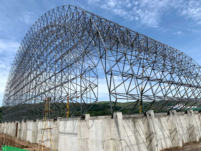 (2)网架加工前应对现场尺寸进行复测,确认无误后方可进行加工、安装;网架制作、运输、安装应遵守《空间网格结构技术规程》JGJ7-2010、《钢网架遵化螺栓球节点》JG/T 10-2009、《钢网架遵化螺栓球节点用高强度螺栓》 GB/T 16939-2016、《遵化钢结构遵化工程遵化施工规范》 GB50755-2012、《遵化钢结构遵化工程施工质量验收标准》 GB50205-2020。